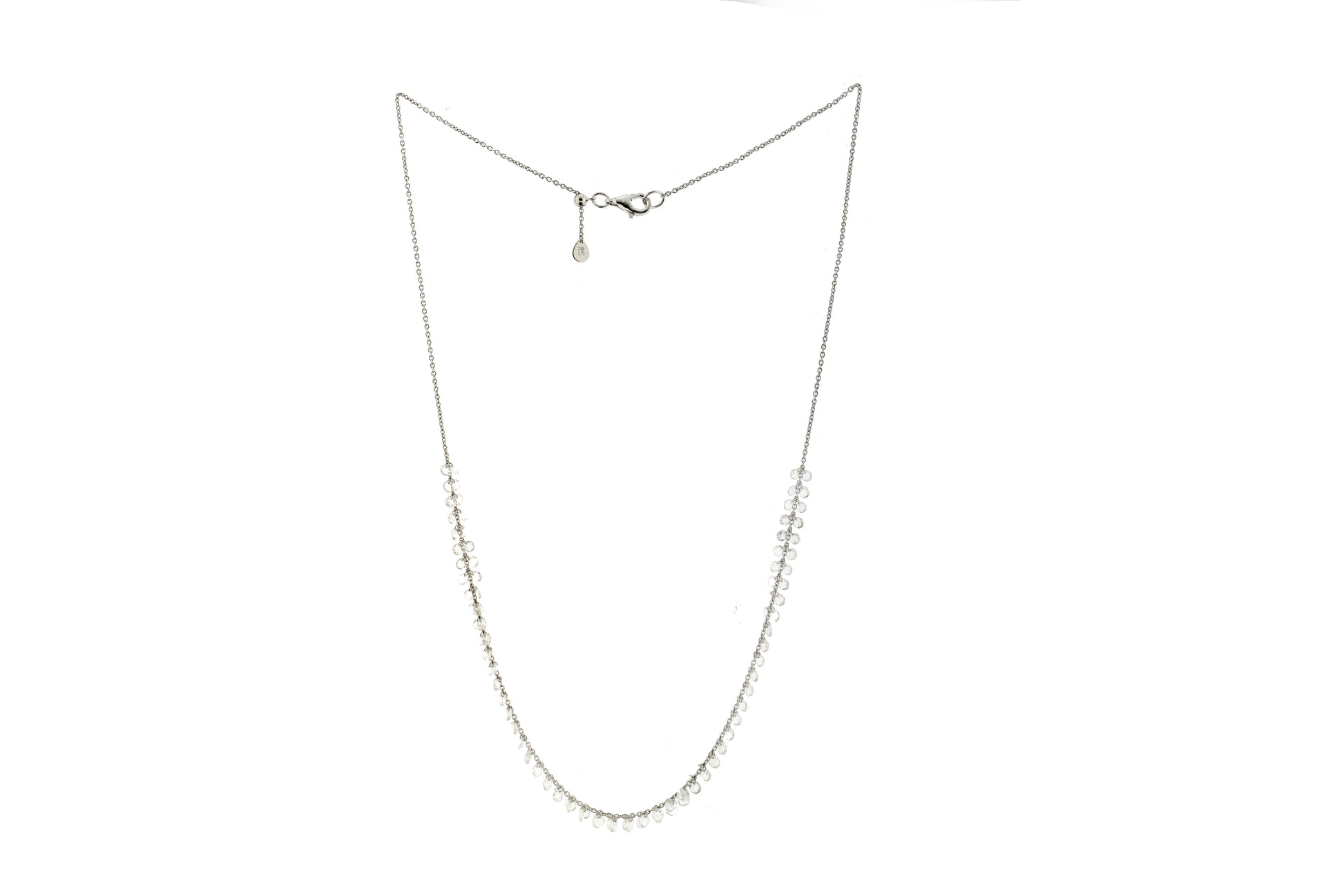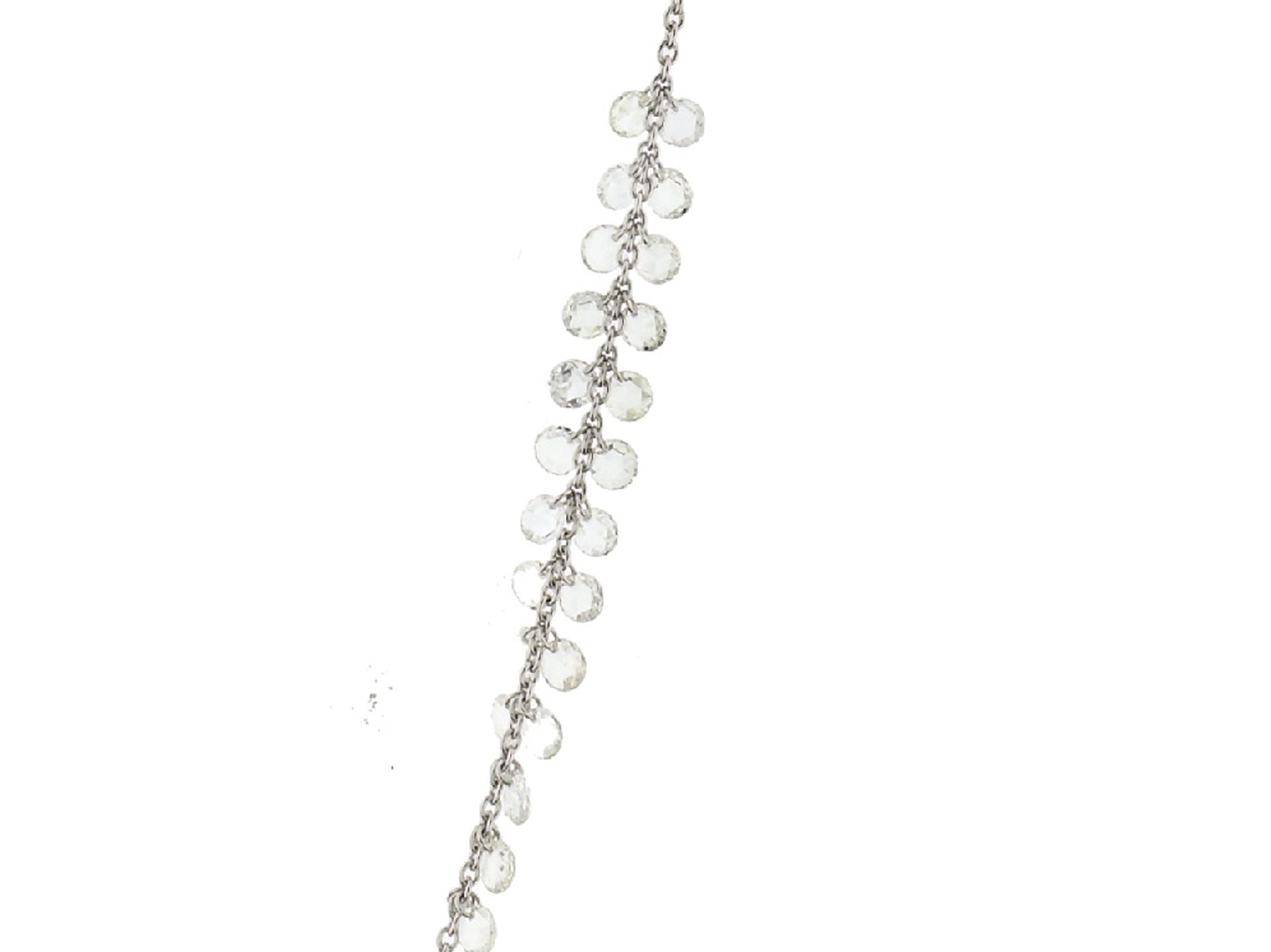 This elegant necklace features a refined chain adorned with closely spaced, rose-cut pierced diamonds.