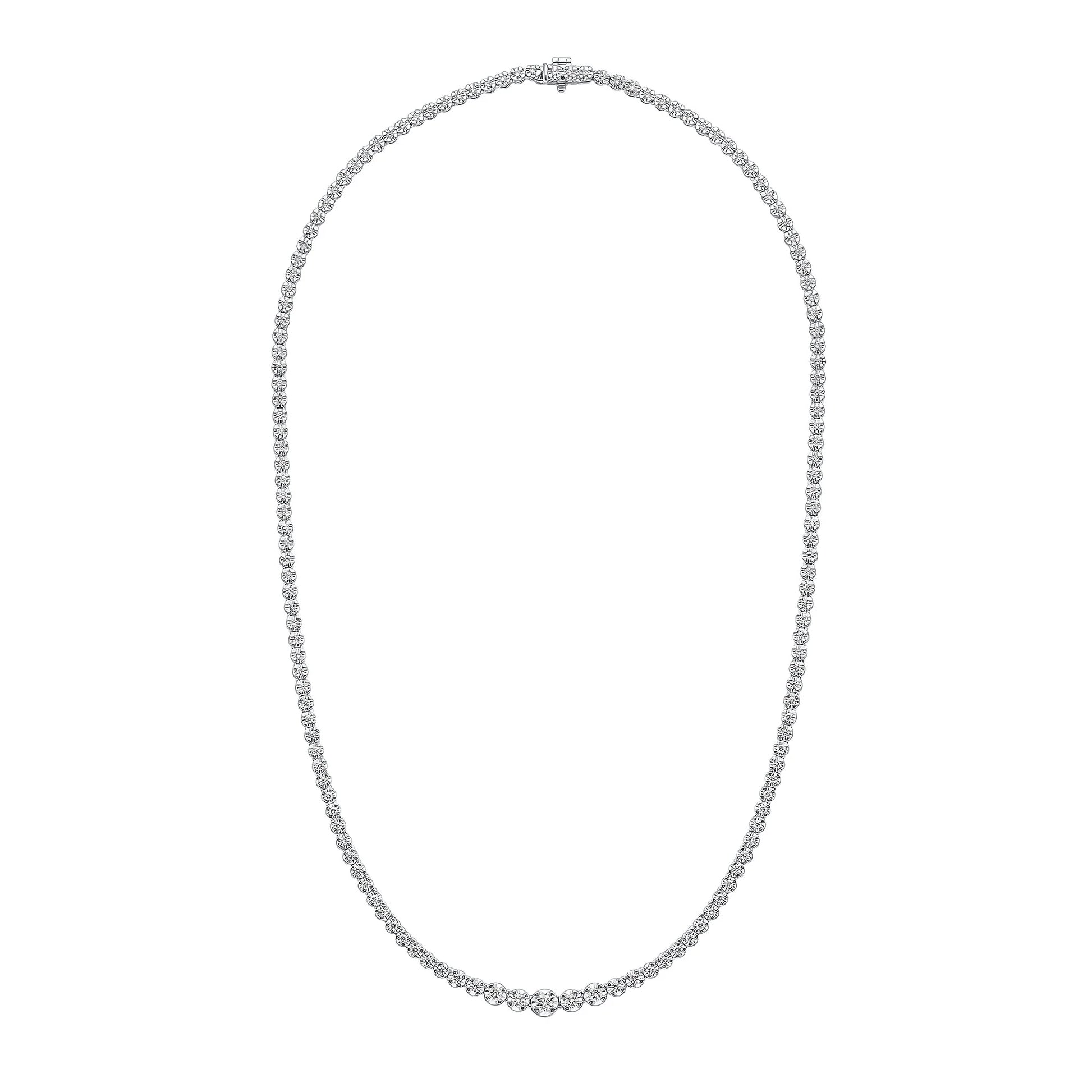The classic design of a tennis necklace with natural diamonds.