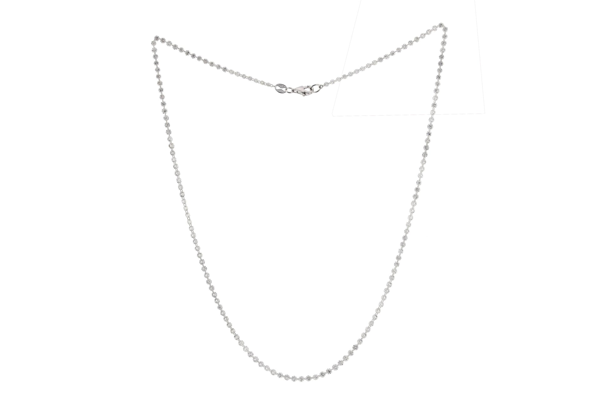 This unique necklace features 7.96ct rose-cut pierced diamonds. The rose-cut adds timeless elegance, while the pierced diamonds are delicately linked together through their drilled openings, creating a seamless and fluid connection that enhances the necklace’s airy and modern aesthetic.