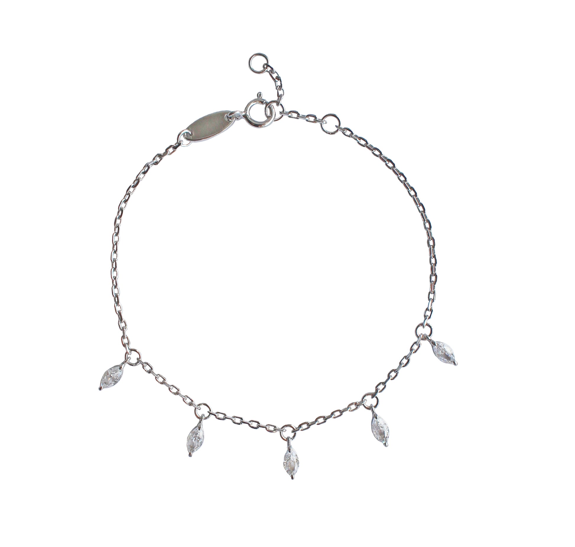 Classic bracelet with 5 marquise cut cubic zirconia drops.